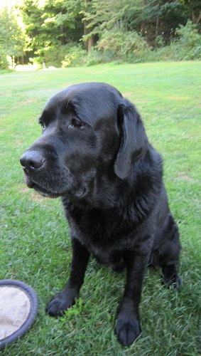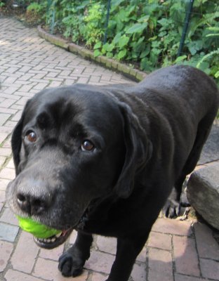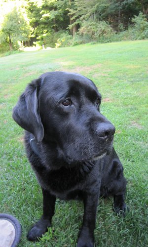 Here's how Elmer got started: Mother, Soffie (a great-niece of Ada's), is the dear girl of the Gilmors, the famous glassblowers in Millerton, NY. Father, Yeager ("Yeags") lives in Providence, RI and is a hot shot champion on the hunter trials circuit. He's a Big Boi. Elmer's litter had 3 yellow brothers, a black brother and black sister. He was born on September 22, 2008 and we kidnapped him on November 20.