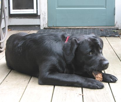 June 2009: Elmer is pretty good at entertaining himself. Here, he works his stick!