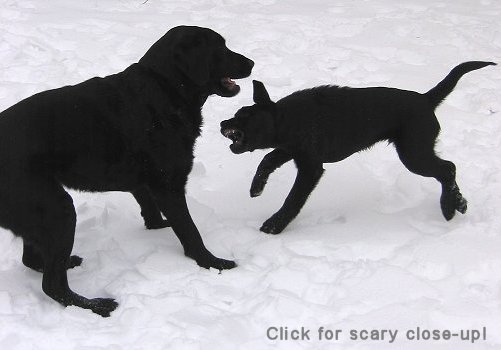 02/03/09: Elmer is 19 weeks old, and keeps getting bigger, dammit! It's snowing hard and Elmer is bored, so he decides to gnaw on Ruby. In January I put up some bad videos on YouTube, which I took with my geezer camera.