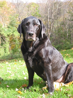 Left: Ada photographed in the summer of 2002. She was a black lab (not navy blue) and in fact, tended toward a brownish hue. Below, Ada photographed the day before she met her maker. If you scroll down, there are some pictures of when she was younger.