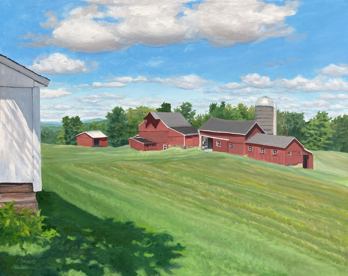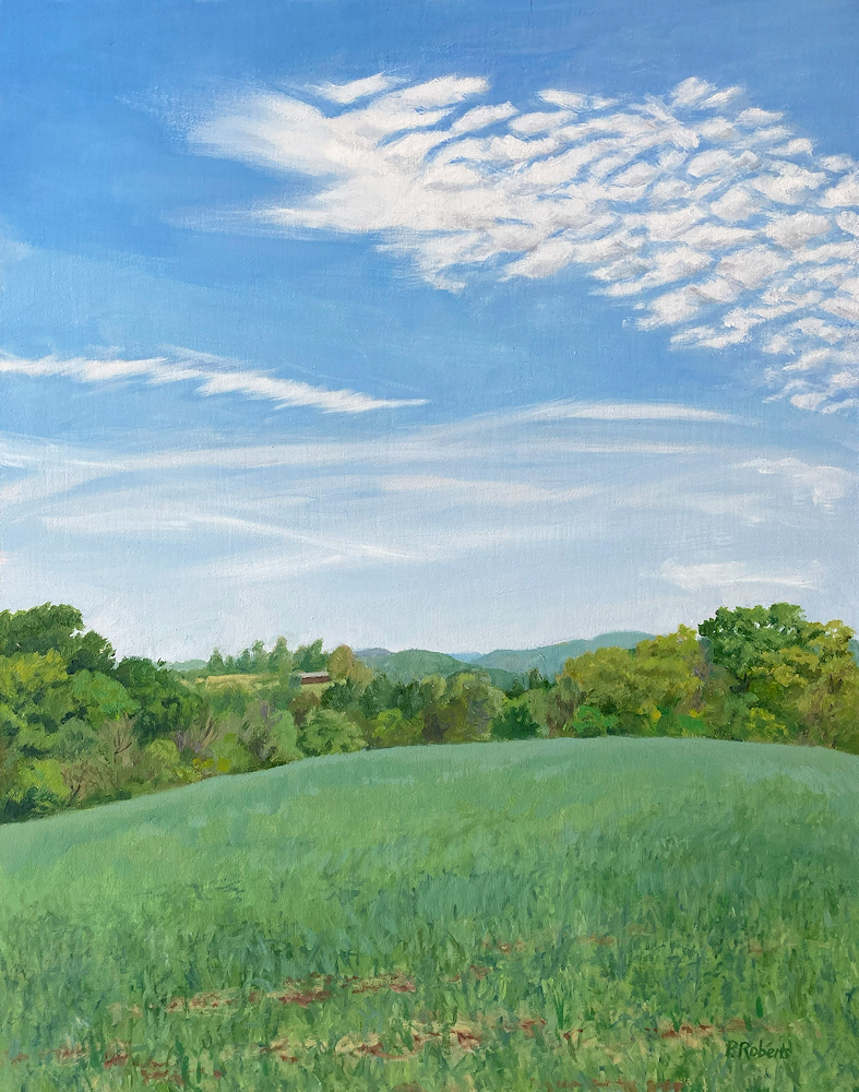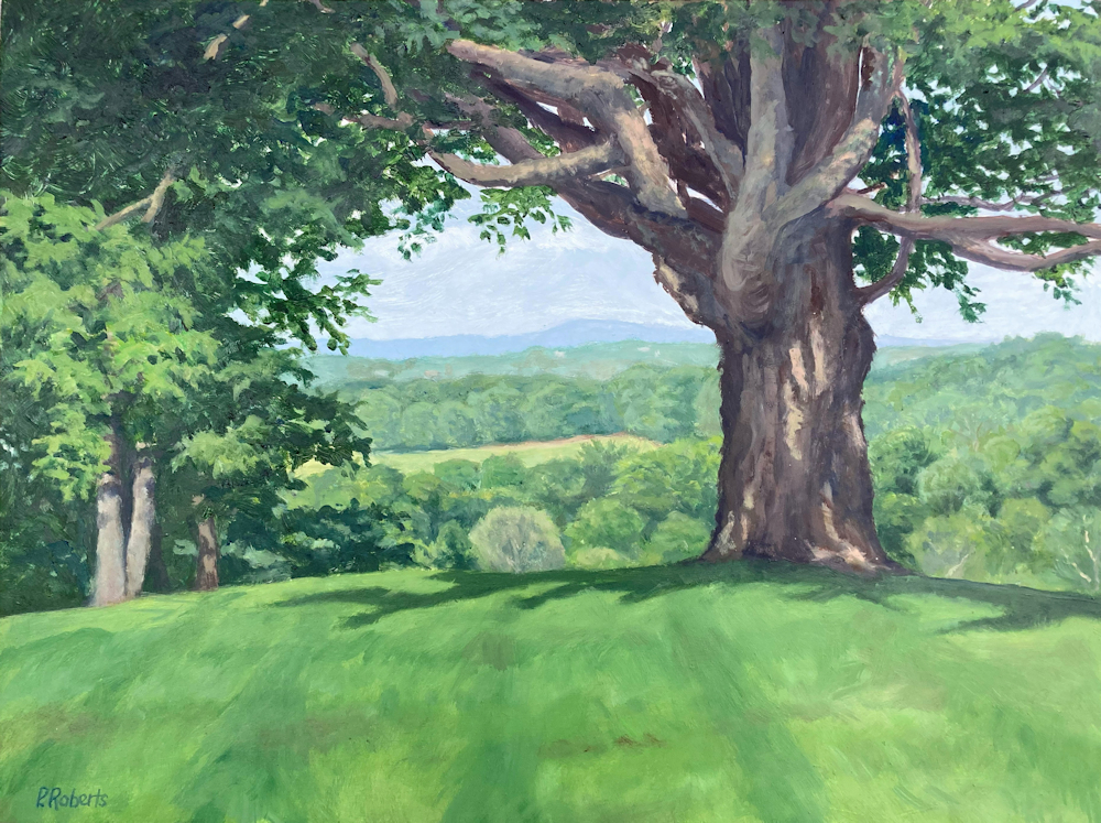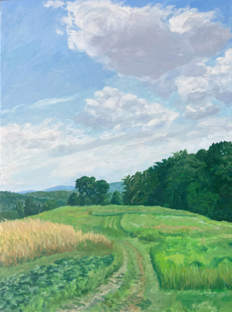 Painting with oils on either panel or Arches cotton paper, I work on-site (en plein air), trying to convey the quality of light and space. This is both fun and frustrating, since the light constantly changes and shifts, not only by the minute, but from day to day, with temperature and humidity. And when the light shifts, the way you see space and distance changes, so it's a race to capture the essence of the scene.