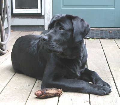 June 2009: Elmer is pretty good at entertaining himself. Here, he works his stick!