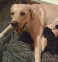 Here's how Elmer got started: Mother, Soffie (a great-niece of Ada's), is the dear girl of the Gilmors, the famous glassblowers in Millerton, NY. Father, Yeager ("Yeags") lives in Providence, RI and is a hot shot champion on the hunter trials circuit. He's a Big Boi. Elmer's litter had 3 yellow brothers, a black brother and black sister. He was born on September 22, 2008 and we kidnapped him on November 20.