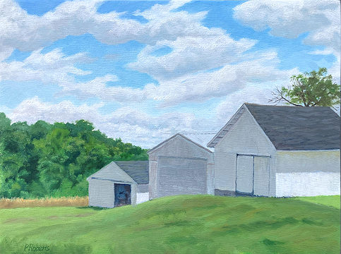 Barns; oil on panel; 16" x 20"